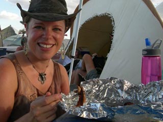 See a theme here? This was my year of being the cingene, or gypsy, as a hot Turkish boy named me. By day three I realized, Marcia, cingene girl, let it go. Five nights a week in the “default world” here in San Francisco I’m eating so many fantastic meals, over-scheduling myself here and there, sometimes going to two or three events a night… and out on the playa, I discovered it was time to shrug off the tablehopper identity, toss the calendar into the dust storm (metaphorically speaking, of course), and just eat when I was hungry, when it happened to cross my path, or my personal favorite, cook a change!