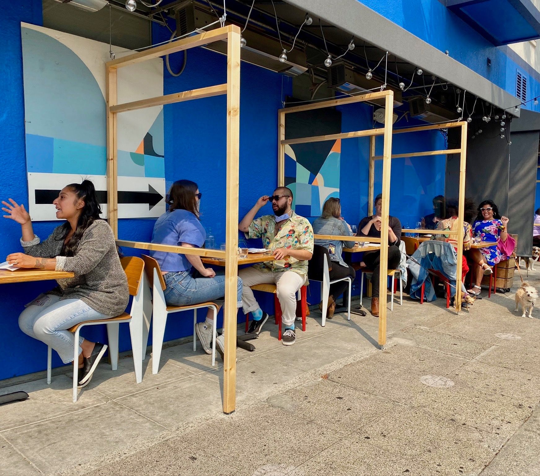 After solely offering takeout and delivery service during the pandemic, AL’S PLACE has reopened with table service on a new and revamped patio (takeout is on hold for now). I had a chance to check it out at a preview last week, and was so impressed with the stylish and safe atmosphere—there are eight tables along the side of the building, with transparent, suspended Plexi dividers between guests that are wiped down between table turns. There’s also punchy artwork and bright colors, along with the always-cool music they play at AL’s, which all energize the vibe—plus there are heaters. You’ll find hand sanitizer on the table (the new salt and pepper), and in order to turn the tables in a timely manner, you’ll be informed of a time limit at the beginning of your meal. They plan to add more seating with an outdoor parklet, but for now, those tables are their sole breadwinners, so be respectful of the reservations coming after you.