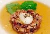 Though not for every eater, Chalkboard chef Shane McAnelly’s Library menu ($95) at the Les Mars Hotel is most definitely for the “I post every meal I eat on Instagram #noms” crowd. Six painstakingly curated courses spanning several hours are now being served each weekend in the cozy library room, with seating for just 16. For each course, there are both vegetarian and non-vegetarian selections, equally intriguing in every way. Beet “bubbles” smother paper-thin slices of kampachi with a surf-meets-earth quality; bacon consommé is drizzled over a tiny stack of pork belly, quail egg, and nasturtium, each flavor parading over the palate; smoked maitake mushroom is shaped into a faux bone marrow; a puffed soufflé of spring strawberries is gently deflated with a quenelle of mascarpone ice cream (by pastry chef BIll Woodward); and a ribbon of dark chocolate ganache is punctuated by banana ice cream, bacon crumbles, and peanut butter dust. Beverage pairings (an additional $70) are curious and clever, with sake and sour beer pairings as carefully chosen as the wines.