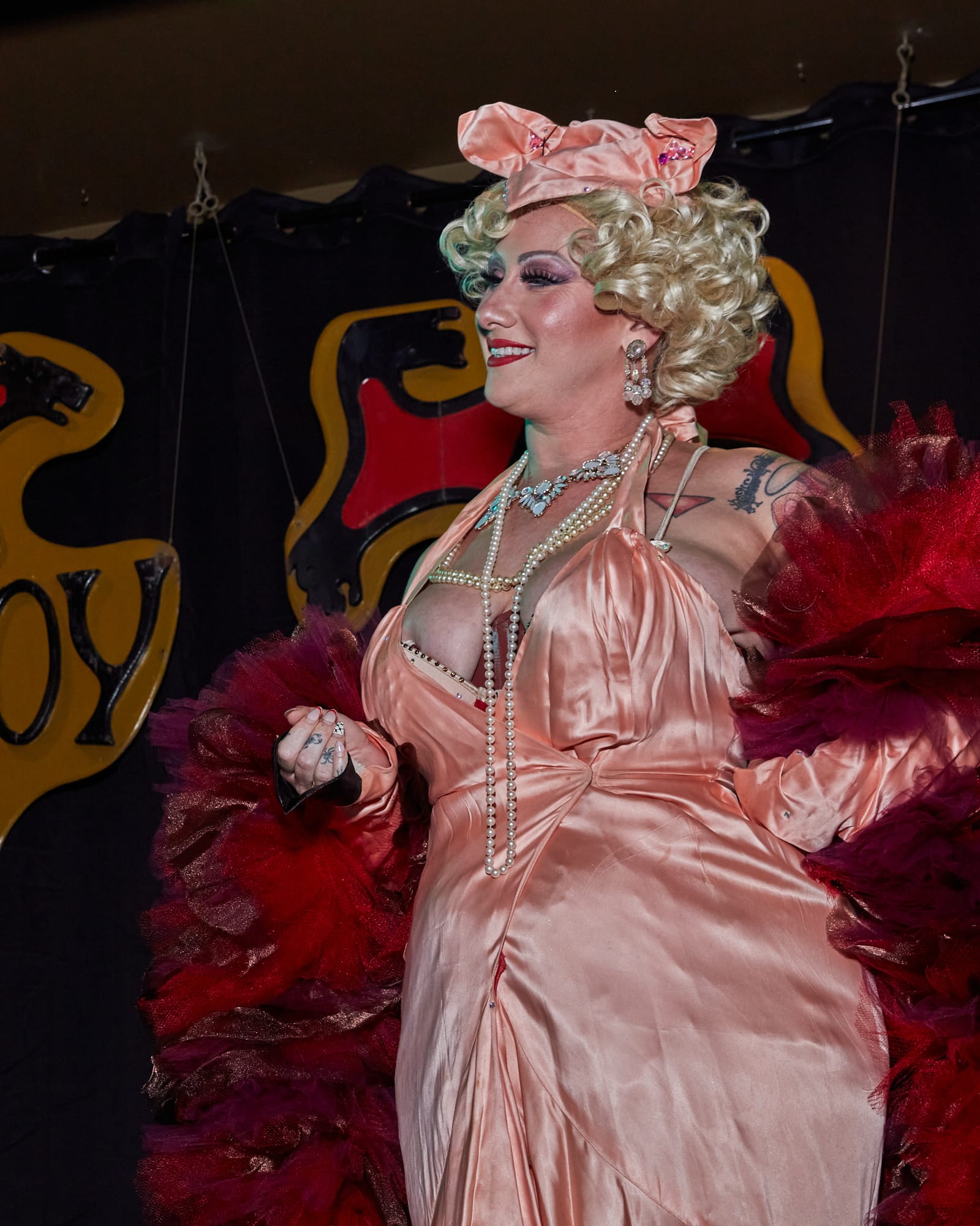 Entertainment: MC Dottie Lux, Paige Turner, and Bionka Simone.