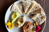 The mezze sampler at Dyafa, with fresh-baked pita. Photo courtesy of Dyafa.