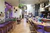 The open and airy design of Mago, with a punch of purple. Photo: © tablehopper.com.