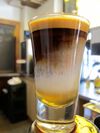 Last week, as I was riding my bike home from a lunch in the Mission, I swung by the new ~GRAND COFFEE~ for a little fuel. As mentioned previously, owner Nabeel Silmi is applying some bartender skills to the barista craft. What you see here is the off-the-menu liquid affogato, a layered shot of cane syrup, Clover half and half, and Four Barrel espresso. Yeah, it’s one heck of a shot (to the system). I then proceeded to order an iced latte to go, which Silmi shakes up like a cocktail in a shaker, adding a little simple syrup so you don’t need to worry about adding any sugar. Delish and frothy. The space is tiny but cool, with epoxy concrete floors, jazz music playing, reclaimed redwood planks, and a beautiful La Marzocco Linea three-group paddle. (I’ll be back for an egg cream next.) Hours are Mon-Fri 7am-4pm, Sat-Sun 8am-5pm, and starting July 10th, Grand Coffee will also be open Fri-Sat from 9pm-12am. You can keep track of the café’s offerings and hours on their Twitter feed.