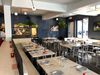 He’s done an impressive remodel of the space, sporting a crisp look with white ash tables and natural modern chairs, and the walls feature wood panels dyed a deep indigo. Add in the modern light fixtures, groovy scene at the eight-seat bar, retro artwork, and eclectic, upbeat soundtrack, and you’ve got a fun scene happening here. Oh yeah, and a madonna at the door to greet you (nothing like sourcing some South San Francisco statuary to add some Neapolitan vibes). You’ll also notice that the infamous din that was at Hog & Rocks has disappeared—they added some sound-dampening panels, and even more should be coming soon.