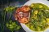 Grilled whole rock cod, roasted hen of the woods mushrooms, potatoes, sorrel sauce. Photo: Rasami Ruangsri.