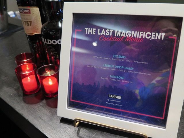 I couldn’t host these chef events without the ever-gracious and appreciated support of Campari America. They agreed we needed to serve cosmos and lemon drops in honor of what we all drank at Stars back in the day—’80s flashback! Rye on the Road created some updated versions for the party: the cosmo was made with SKYY (celebrating 25 years!), muddled lime, dash of Aperol and Grand Marnier, cranberry bitters, with long lime zest, and the lemon drop daisy was made with Espolòn blanco, pressed lemon, citrus, and vanilla bean oleo sacrum, shaken and topped with splash of prosecco, with a dehydrated lemon and sugar rim. (We made sure to serve everything in a rocks glass so the cocktails would fit in the theater cup holders, heh-heh.) And it wouldn’t be a chef event without Negronis. There were also some tequila shots that may have happened, but I am not responsible for those. As Jeremiah said at the end of the screening, all movies should be screened with lemon drops! Agree.