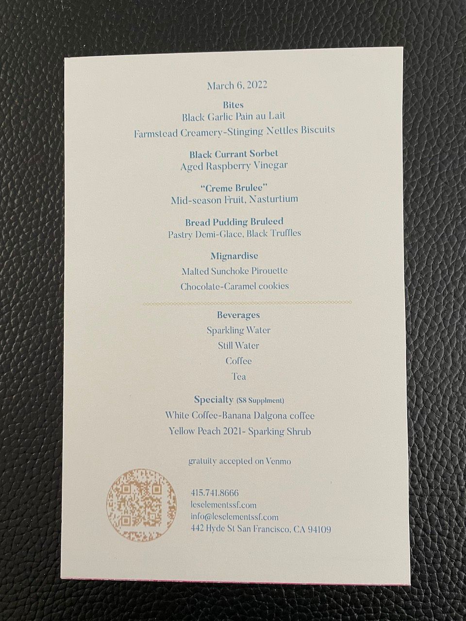 Some exciting news from innovative pastry chef Luis Villavelazquez (China Live, Eight Tables, Orson): he’s launching a public-facing experience from his Tenderloin pastry and dessert consultancy Les Éléments, offering multi-course, dessert-tasting events. Tamara Palmer at 48 Hills has all the details (and pics from a preview tasting). The first tasting menu launches on Saturday March 26th at 7pm—it will continue on Saturdays through April 30th. (Here’s the preview menu—you’ll note plenty of savory elements, it’s not just a sweet-fest.) There’s room for up to ten people. The price is $65, plus an 18 percent service charge. Reserve by sending a direct message to @leselements on Instagram. 442 Hyde St. at O’Farrell.
