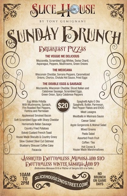 The new location of TONY’S SLICE HOUSE that opened last month is now serving bottomless weekend brunch on Saturdays and Sundays from 10am to 2pm. The spread is a little out of control, with three different breakfast pizza selections, plus dishes like soft scrambled eggs, housemade Italian sausage, blueberry coffee cake, housemade biscuits and gravy, spaghetti, salads, and much, much more.
