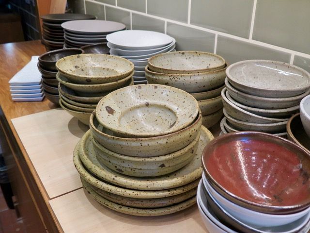 The cool Art Deco building (previously Kyu Sushi) now has a beautiful door from Japan, more than 100 years old, previously used for a storage area (note the vents on it). Once you walk in, you’re greeted with a long bar made from heavy wood that was used to press rice while making sake, with barstools with bright poppy seats. There are cherry blossom wood cabinets, stocked with pottery from Japan as well as some made in conjunction with a potter in Grass Valley. Throughout the space, there are some displays of ingredients like preserved lemon and pickles, plus spices that highlight the notes in the beers.