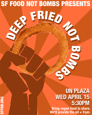 I was reading on the SF Weekly food blog about ~DEEP FRIED NOT BOMBS PART TWO~, when folks are invited to bring vegetables and other vegan items to plunk into the provided hot oil. (Are Peeps vegan?) 5:30pm. United Nations Plaza at Civic Center.