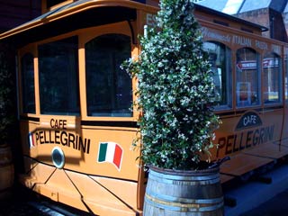 Starting this Saturday July 4th (if everything goes according to plan), ~PIAZZA PELLEGRINI~ will be serving takeaway panini from the cable car next door to the restaurant, kind of like an Italian taco truck. On the menu: porchetta panini (pulled pork with a special sauce), Italian sausage panini with a red and yellow bell pepper sauce, and an Italian meatball panino with a marina sauce. There will also be granita al caffè, which has me fired up to head on over, like, now. Everything will be priced under $10. The owner, Dario Hadjian, has surrounded the area with plants and flowers, and has set up mosaic cafe tables and chairs. Hours will be 7am–8pm. This Saturday, Dario will donate 20 percent of sales from the cable car to the Telegraph Hill Community Center. 659 Columbus Ave. at Union, 415-397-7355.