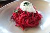 Beet spaghetti with burrata at Pasta Pop-Up. Photo courtesy of Francesco Covucci.