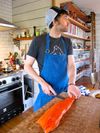 Kylen McCarthy of Pioneer Square Pantry preparing some extremely scarce sockeye salmon on Lummi Island. Photo: © tablehopper.com.View tablehopper Newsletter from Tuesday, Aug 27 2013