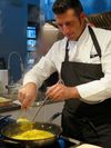 Chef William Zonfa twirling portions of Rustichella 90” RAPIDA spaghetti with cream of leeks, DOP saffron from Abruzzo, and guanciale. Photo: © tablehopper.com.View tablehopper Newsletter from Friday, Oct 2 2015
