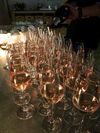 Celebrating sparkling rosé weather at the Gastropilgrims dinner at Airbnb (featuring spumante brut rosé of nebbiolo d’Alba from 460 Casina Bric). Photo: © tablehopper.com.View tablehopper Newsletter from Tuesday, Feb 6 2018