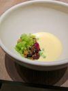 Dessert at the new location of Nico is a dream: cherry compote, tarragon granita, fig leaf English cream, and pistachio crumble. (And then the warm chestnut madeleines show up!) Photo: © tablehopper.com.View tablehopper Newsletter from Tuesday, Jun 26 2018