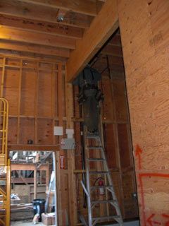 David White's project manager process has moved a bit like this (while reading say this list as fast as you can, and you sort of get a sense of the pace these guys have been working at the past few weeks): get the drains in the floors, put in all the rough plumbing, venting for the kitchen, lay all concrete slabs--then acid wash, stain, and cover the floors, install the walk-in box (the giant fridge), tile the floors, cove the kitchen floors, do all the remaining plumbing simultaneously, then have the electricians work in all the conduit, get in the mechanical engineer to vent the hood, finish up the roof, get all the insulation in, and then (drum roll here)… sheet rock.