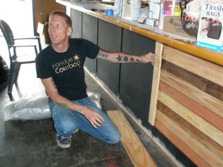 Even with all of the support from Urban Solutions and friends in construction, the space Dave is inheriting has some flaws: the kitchen drops down with an uneven floor, requiring a step up. Under the remodel, David can file for an ADA hardship based on the percentage of cost of his build-out in comparison. Other improvements he's making are pouring new cement flooring in the kitchen, installing FRP (fiberglass reinforced plastic) and stainless steel kitchen walls, and planking a wooden bar and wood-paneled walls. There will be warm brown wall paint, bathroom fixture upgrades, he's laying a new tile floor behind the bar, installing pendant lighting and brushed aluminum fans sourced from neighbors at Bay Lighting & Design up the street, and installing a 71-inch flat-screen television showing (what else?) spaghetti westerns.