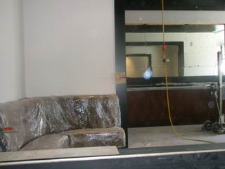 In an earlier 'hopper, Marcia revealed that the restaurant will be done in platinum and rich dark chocolate colors; this is still very much true, but the most difficult element of the design to describe or even show in these morning light images is the plethora of diffused natural light that makes its way into the space.