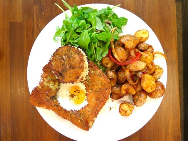 Brunch the next day was quality—Stewart is a fan of mushrooms (he’s a big forager), so the omelet ($14) with corn, mushrooms, chives, and Piave cheese (hold the truffle oil for me, thanks!) was the way to go. But then there’s the eggs in a hole ($13), with the creamy eggs tucked into Parmesan-crusted housemade brioche, topped with a mushroom fondue, and some really good home fries, with the richness cut with arugula on the side. You can steam it off later. Heh.