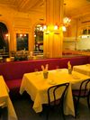 The stocked raw bar, cherry red banquettes, red and white napkins and plates, sparkly chandeliers, tiled floors, and shining brass railings all give it a snappy brasserie feeling, along with an exuberant staff, and there was an eclectic crowd dining late. If I was having an affair, it would be the perfect venue: the room is located upstairs from the street, there are lots of little tucked-in corner booths, and it’s in a hotel. Score.