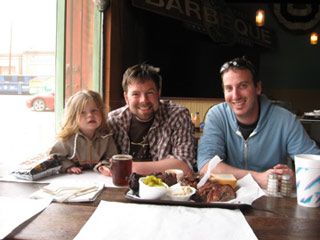 Jordan's niece Clementine, Jordan, and the author at Louie Mueller