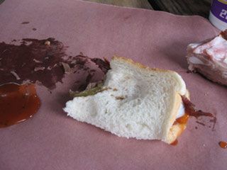 After two days of eating like this, I think I'd like to debate with Emeril whether or not this is in fact the holy trinity. In order to be consistent, I tried everything in the same order always: first, brisket without sauce; next, ribs; and then the sausage. Once everything was tasted the way the pit master intended, I would make myself a true BBQ sandwich. One piece of white bread wrapped around some brisket with pickles, onions, and some BBQ sauce. Anyone who tells you that the key to a good sandwich is "good bread" has never had one of these--the light, Wonder quality of the bread lent the perfect balance of texture and flavors to the sandwich. "Good" bread would have been too much.