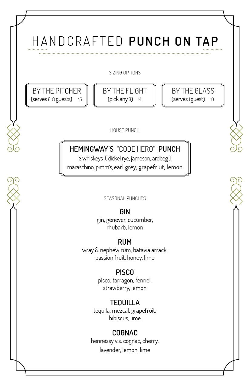 The cocktail program comes from bar veterans Kate Bolton of Maven and Michael Mina, and Alex Smith of Gitane and Honor Bar. You’ll find historically inspired punch on tap, available by the pitcher, glass, or flight; take a look at all the options here. There are also cocktails like the Sherlock Holmes (pisco, apple brandy, zucca amaro, birch beer, and lime) or the Holden Caulfield (rock and rye, oloroso, and angelica bitters); here’s the full list for your perusing pleasure. There is also space for private groups in the Hemingway Room, which is probably the perfect place to enjoy a few of those punch pitchers with some of your rowdiest (and most literary) friends. Opening this Friday May 31st. Hours are Mon-Fri 4pm-2am and Sat-Sun 6pm-2am. 662 Mission St. at Annie.