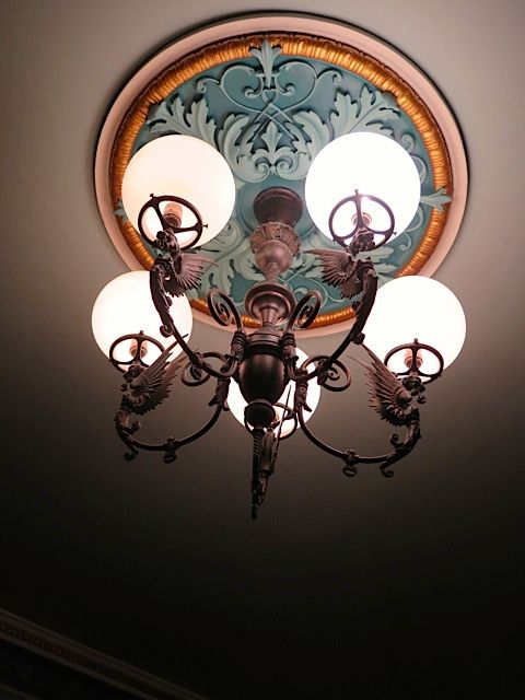 There’s a lot of seating in the main room (perfect if you’re waiting for your table at Tosca), and the large windows that look out on Columbus keep it from feeling like a hidden speakeasy. There are so many quality details, from the beautiful wallpaper to the elaborate medallions on the ceiling, plus chairs with striped silk backrests, and inlaid in the wood floors are reproductions of pharmacist pill tiles (which they would use to prepare medications on).