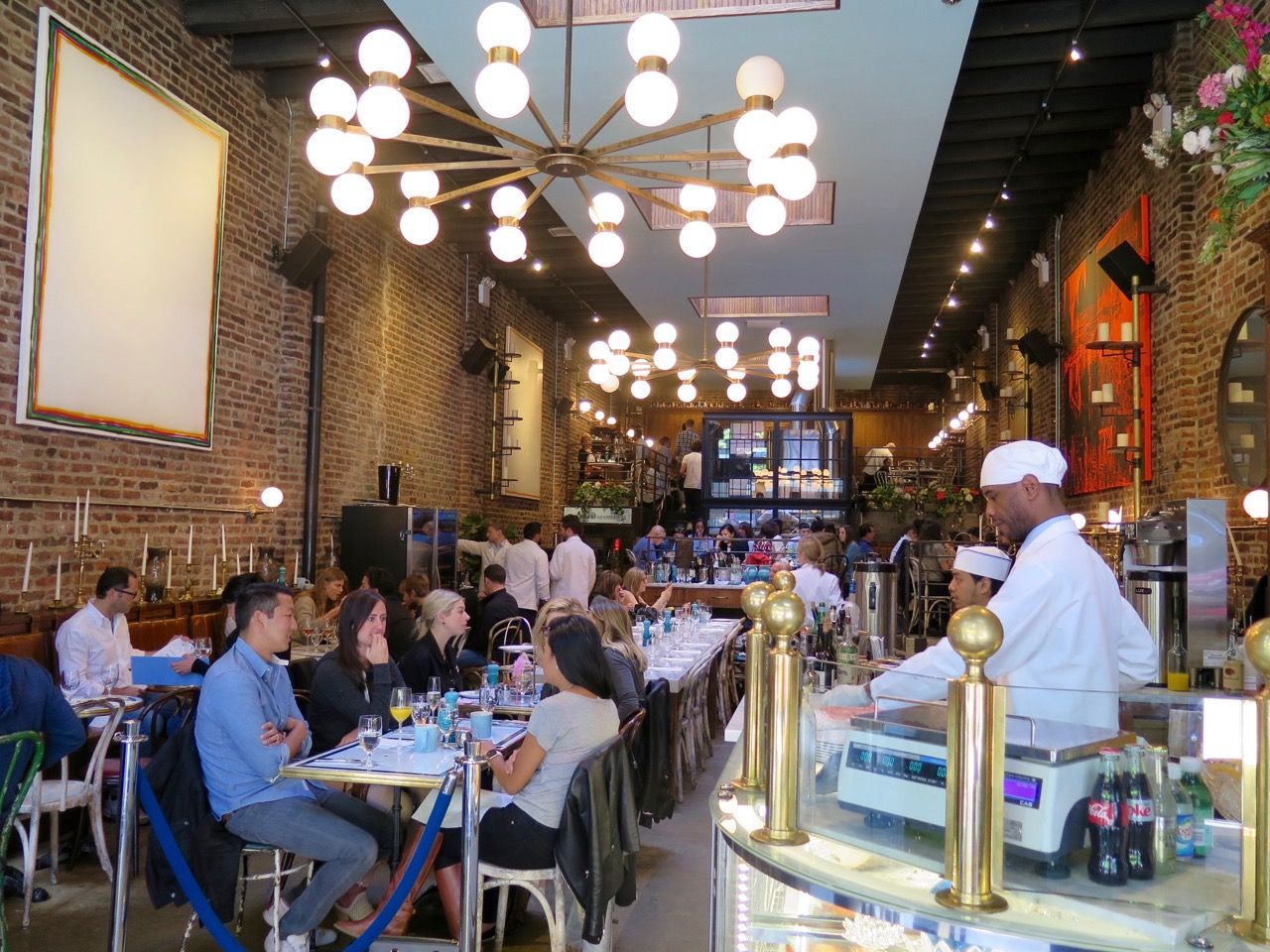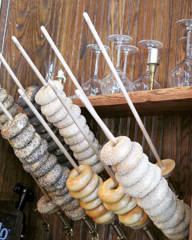 Sadelle’s This spacious spot in Soho, with brick walls and a vaulted ceiling and mezzanine in the back, fortunately can seat a bunch of people during a busy weekend brunch, because there’s a rather strong draw here: incredible hand-rolled bagels that are boiled and baked on-site (right in the middle of the restaurant!) by baker and co-owner Melissa Weller (Per Se, Roberta’s). They are beauteous, full of flavor and with a satisfying texture. At the front of the space at the fish counter, you’ll see dowels poking out from the wall, where the fresh bagels cool and await their next customer.