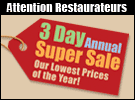 Attention Restaurateurs! Don’t miss the Annual Three Day Super Sale at TriMark Economy Restaurant Fixtures, featuring our lowest prices of the year on restaurant equipment and supplies.