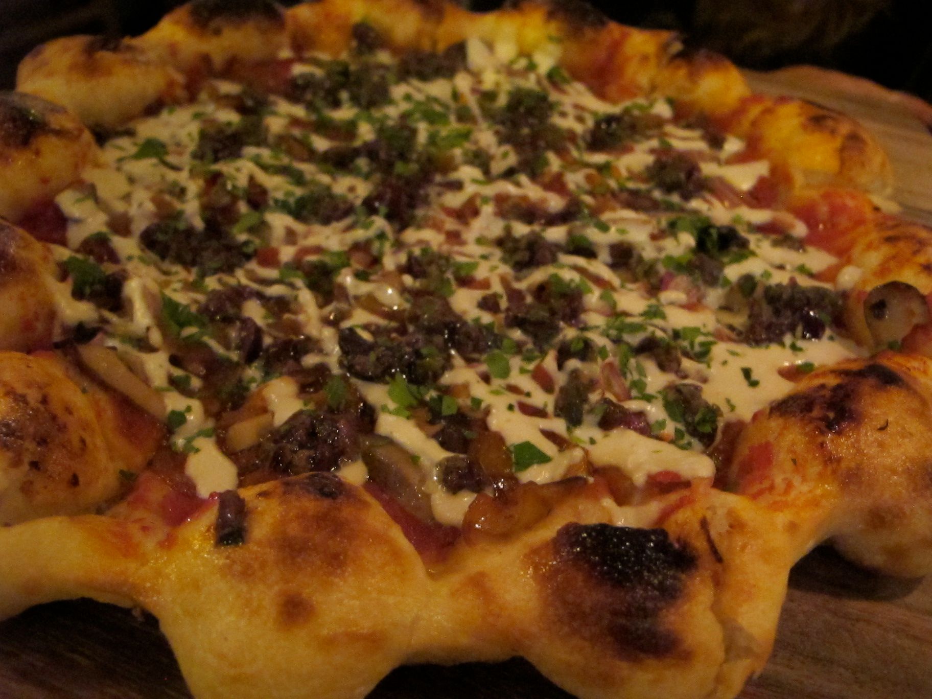The overpriced pizzas, however, were clunkers. For $16-$18, I definitely expected more. A lot more. The crust featured a ring of dough balls (reminded me a little bit of the early Americano pizzas), and tasted exactly how I thought it would be: doughy (but at least the center was thin and crisp).