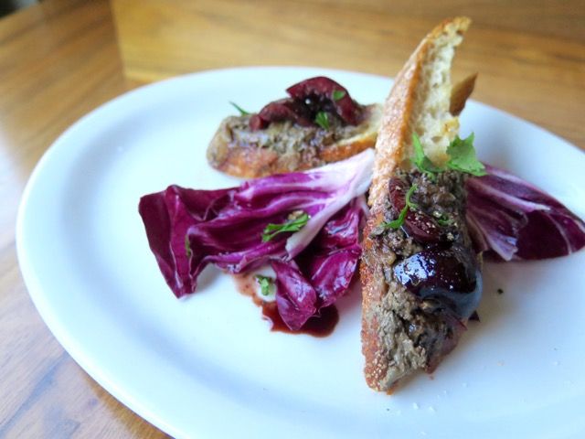 The menu (which you get to see first, dear tablehopper reader!) is designed for whatever your appetite demands or the occasion calls for, starting with small bites like gougères with blue cheese and pink peppercorn, and chicken liver crostini with pickled cherries to go with a couple of aperitifs on the menu. Just look at that antipasto plate, with Olympia Provisions capicola, Parmigiano, cauliflower, Castelvetranos, olive oil, and chile.