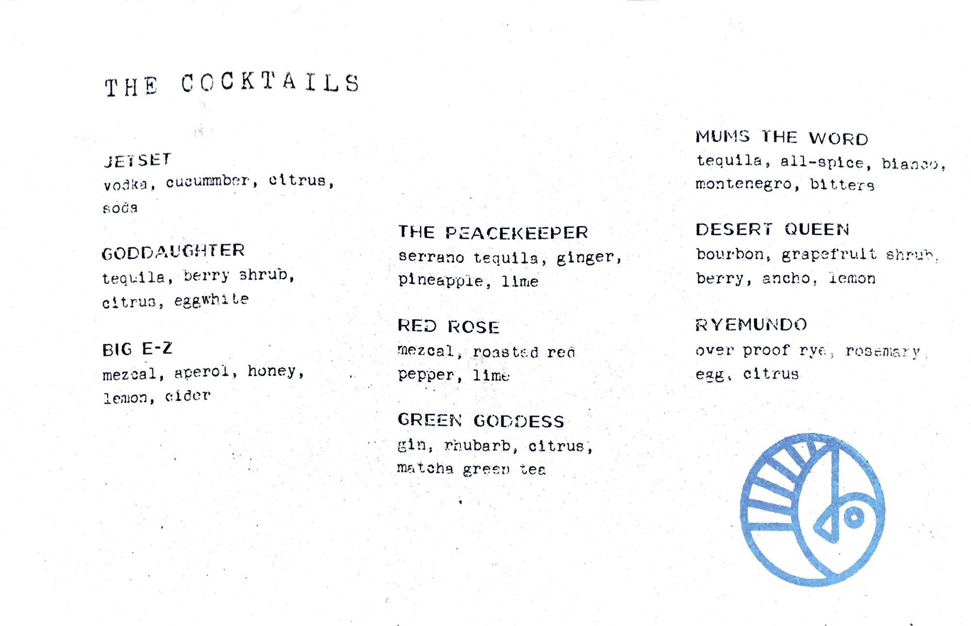 tablehopper media researcher Rebecca Kinney noticed some big changes in her neighborhood at the former Bacchus Kirk: it’s now PEACEKEEPER. The formerly dark bar is now filled with light from an overhead skylight (which opens!), and a tropical Mexican style—it’s full of plants. Here’s a peek at the cocktail menu. Eater reveals it’s from the team behind Harper & Rye (Nate Valentine, Jamal Blake-Williams, and business partner Rob Kashian), and designed by Britt Hull of Tide Design Co.—there’s also a pool table. Open Mon-Fri 3pm-2am and Sat 12pm-2am. 925 Bush St. at Taylor.