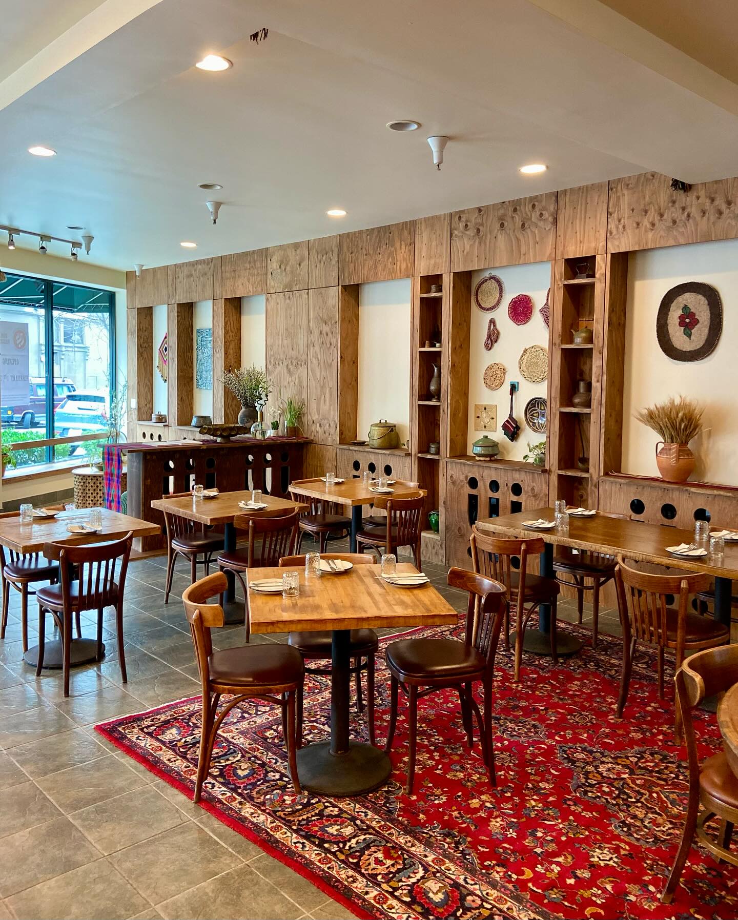 Wow! Lookin’ so good! Komaaj in La Lengua (in the Mission/Bernal Heights) has launched their new mazze-wine bar and main dining room, offering a mazze menu paired with wines that are primarily focused on the Caucasus region, including Georgia and Armenia. Chef Hanif Sadr’s Northern Iranian dishes (mostly new, plus some favorites) are now available for dinner at the wine bar and in the new dining room, from his dips (plus a rasht mazze platter for four) to pomegranate rice and chicken. Open Tue–Sat 5pm–9pm, while lunch in their casual pila bazaar is Tue–Sat 11:30am–4pm and Sun 11:30am–3pm. 20 29th St. at Mission.