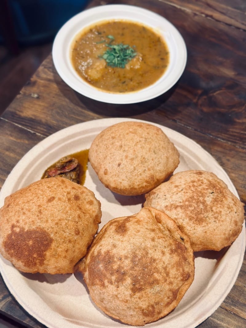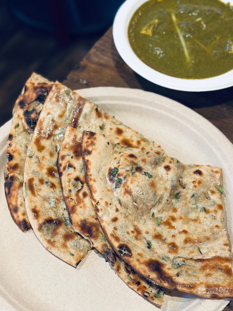 Rajasthani bedmi poori and aloo sabji, and saag paneer and pudina paratha. Photos: © tablehopper.com.