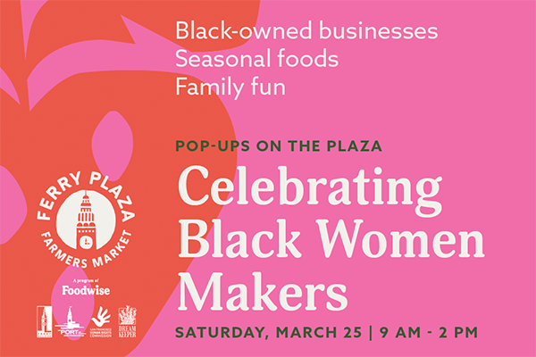 This Saturday March 25th (9am–2pm), celebrate Bay Area Black women makers and Women’s History Month with a day of delicious food and community at the Ferry Plaza Farmers Market and Ferry Terminal Plaza (south of the Ferry Building).