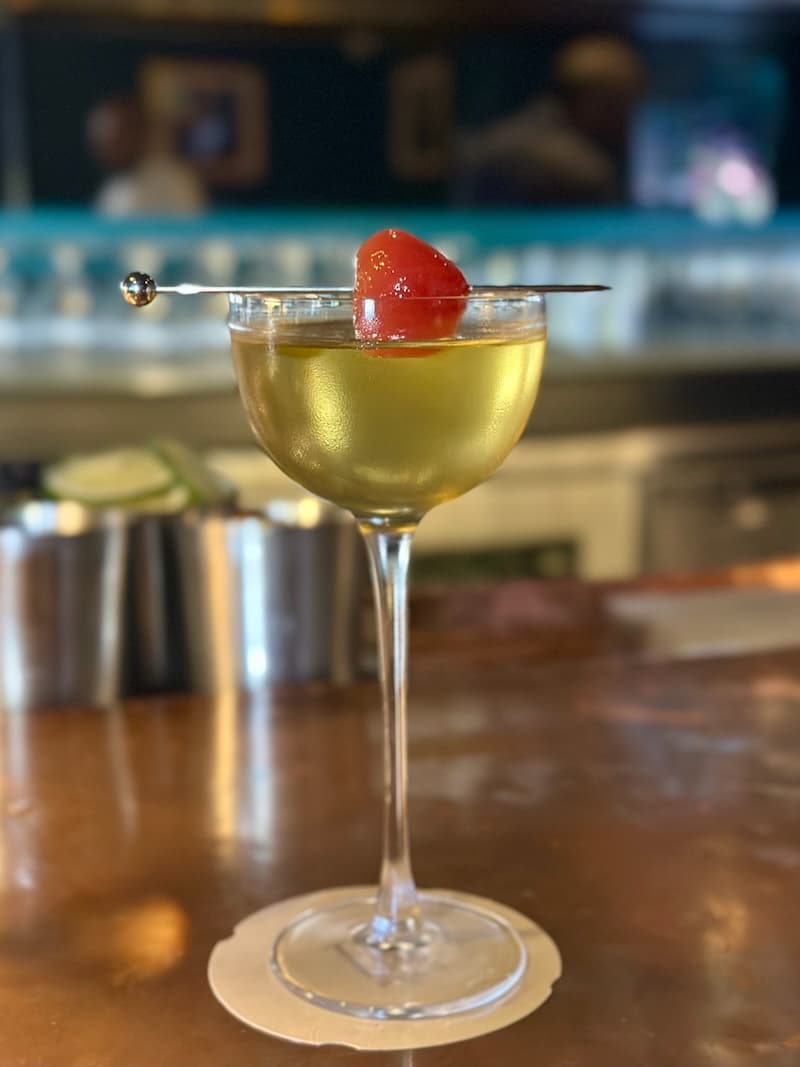 I’m a tarragon fanatic, so The Embarcadero (mezcal, aperitivo, banana, tangerine, apricot, and tarragon) really spoke to me—it’s a fruity-herbal salute to the farmers’ market. The Mission featured a kicky and bright combination of tequila, salsa verde, nopales cordial, and a touch of salt, with a cute chip garnish. (Although it looks like they have an update to the cocktail list launching soon, so stand by.)
