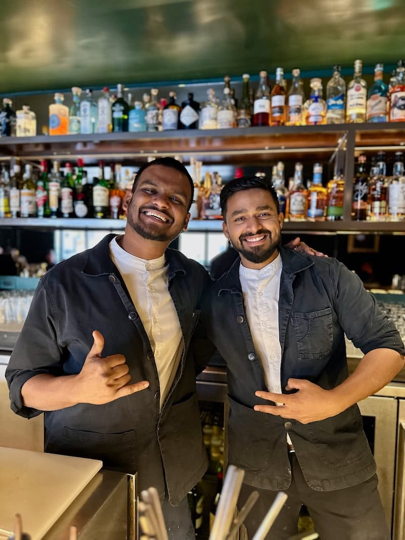 The North Beach cocktail, and Umesh Gupta and Akshay Waghmare behind the bar at Tiya. Photos: © tablehopper.com.