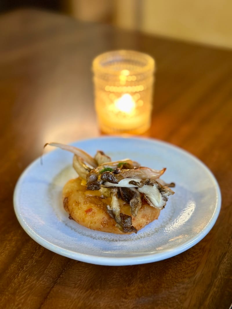 As you can tell by the name, the restaurant is seafood-focused, and you’ll see a raw bar when you first walk in, offering a rotating selection of oysters, from Kusshis to Beau Soleils (6 for $21, 12 for $41). There are a couple salads (like burrata and beets: golden beets, blood orange, kumquat, and citrus vinaigrette; $18) and small plates, including scallop crudo ($22) with avocado and aji amarillo sauce.