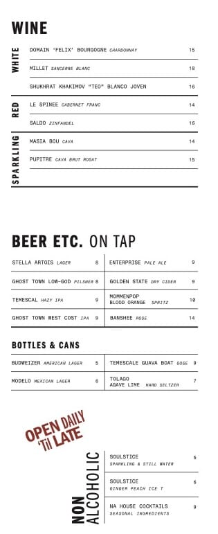 In fact, the cocktail menu is inspired by Poz’s mother’s kitchen, and the childhood snacks and desserts he’d eat from the fridge when she wasn’t looking, and nostalgic treats like lemon bars ended up inspiring some of the cocktails. The drinks menu will offer modern and sophisticated cocktails (also named after the mothers of folks involved with the project!), plus non-alcoholic options, wine, and beer, at prices that are meant to feel inclusive.