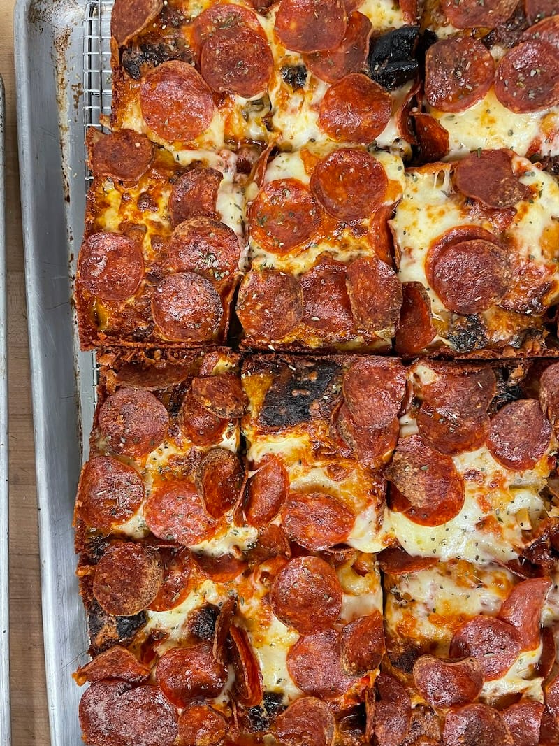 After running a friends-and-family trial last week, owner Gillian Shaw Lundgren at Black Jet Baking Co. in Bernal has launched a Pizza Night and evening service on Tuesdays! Come by for three kinds of slices of sourdough Sicilian from pizzaiolo Max (cheese, pepperoni, and a Brentwood corn with black pepper and Parmesan), a baby grinder (a smaller version of the meatball grinder they have at the bakery on a house Dutch crunch roll, meatballs, marinara, cheese blend, and greens), snacks (giardiniera, pimento cheese with buckwheat sourdough crackers, meatballs and sauce), salads, and save room for dessert: tiramisù, ice box cake, and strawberry shortcake layer cake! Tuesdays 5pm–8pm. 833 Cortland Ave. at Gates.