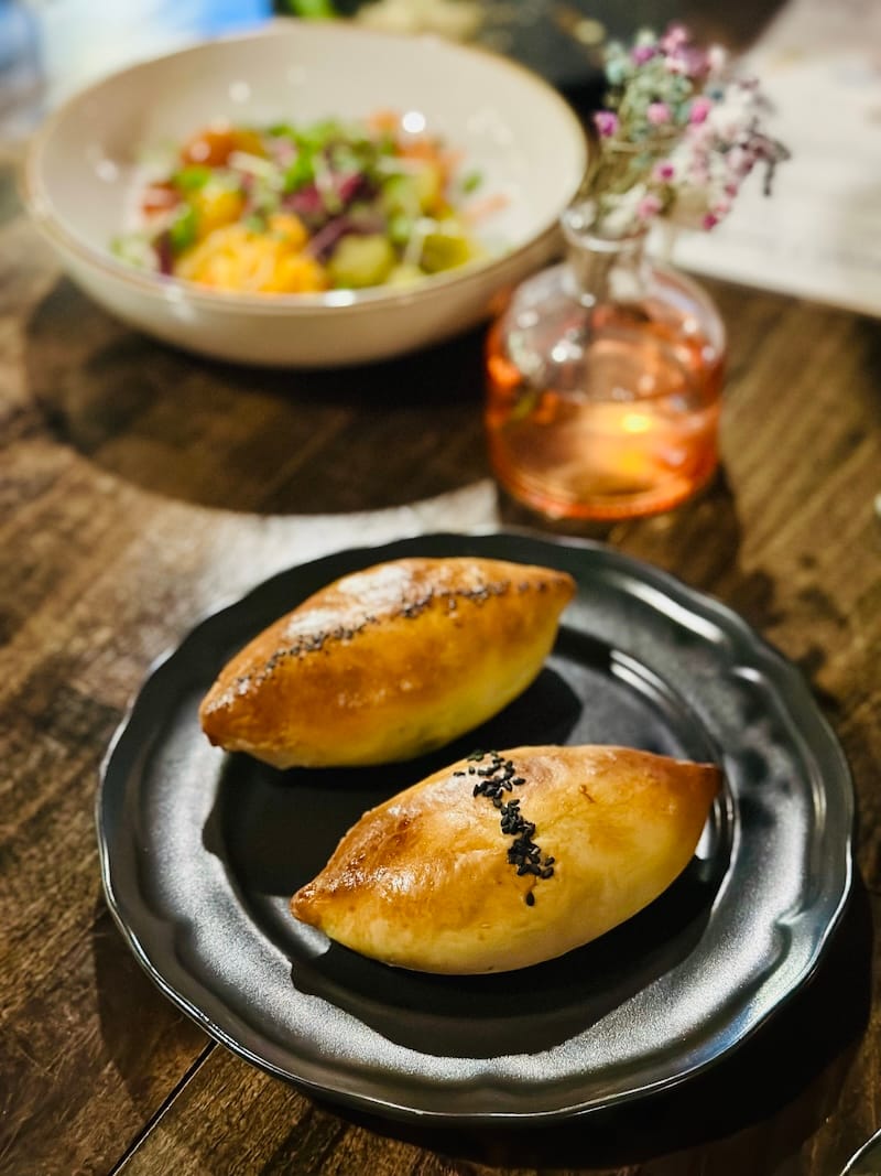The space is designed to look like a summer cottage (a dacha), with rustic woven light fixtures and residential touches. It has a few different dining areas and private rooms, including a tea room (good for private events and small gatherings), and the bar/lounge area has high-top tables and friends of the staff hanging out at the bar. You’ll see solo diners, couples on a date, and large groups sharing a meal.