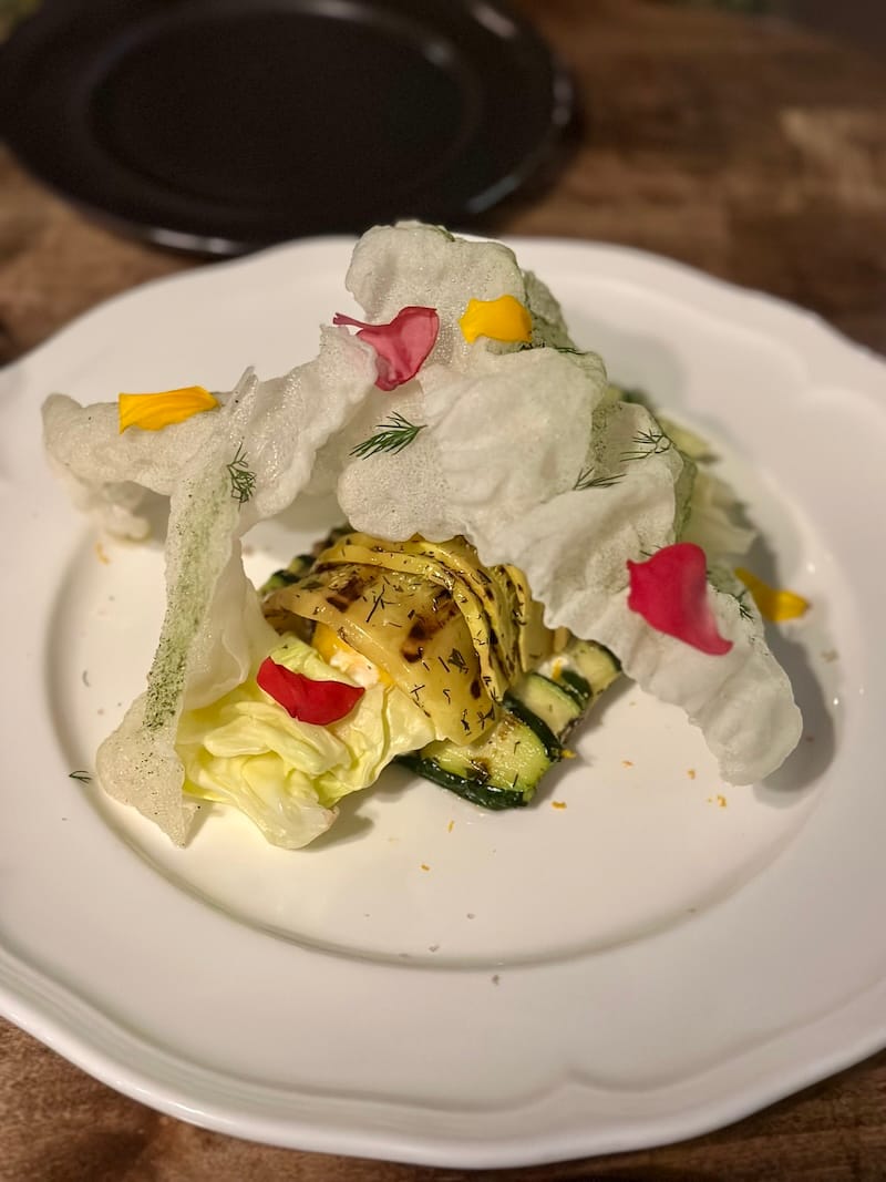 The fancifully presented zucchini salad and mimosa salad. Photos: © tablehopper.com.