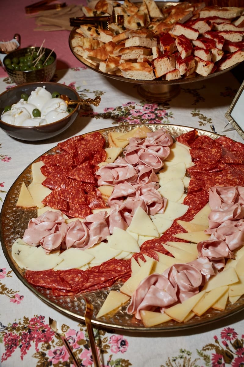 To round out our abundant aperitivo spread of Southern Italian meats and cheeses from Lettieri & Co., I picked up slabs of Liguria Bakery focaccia, plus we had ’nduja and sliced baguette provided by Tony Gemignani’s Toscano Brothers bakery, and I had to offer their Italian rainbow cookies for everyone to enjoy (one of my favorite North Beach treats). Thanks to Feed for providing our vegan and g/f treats, which included Calabrian chile tahini dip, gluten-free seed crackers, and fennel. Tremendous gratitude to tablehopper editorial assistant Savannah Leone Bundy for managing the catering service for the party, everything was so fabulously presented! (We so appreciated the lovely platters and tableware, XO to Anna Weinberg for the zhuzh!)