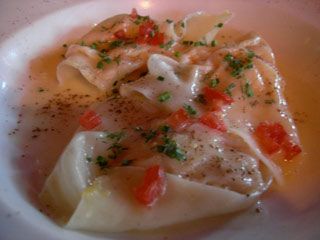 Many can't imagine a French bistro without escargots; the snails here ($11) come in little hollowed-out potatoes, with a garlicky parsley sauce. They were a bit chewy--not quite the plump, succulent kind I've been spoiled with before (and prefer), but the execution was flavorful and homey.
