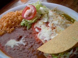 The menu is like what you'll get at Puerto Allegre, with a bunch of combo plates, but instead of standing outside with a bunch of 20-somethings on Valencia hoping to hear your name called, you're waiting comfortably for your food while seated. There are also some specialties, like Marta's mole, or camarones. Not much is more than $10.95. And it's the kind of food that will fill you for hours. I went for the #1, with an enchilada, chile relleno, and crispy beef taco, which came with the de rigueur sides of beans and rice and iceberg lettuce salad. It's the kind of food that takes you back to being a kid, with the big oval plates--well, at least this native Californian.