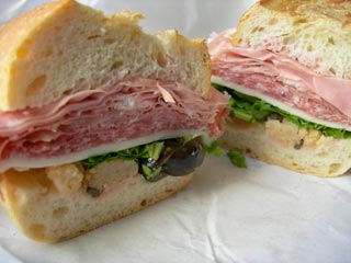 Now, as the daughter of a former deli-owning family, I always notice properly sliced meat. Oh, and effective ingredient dispersion. I love the nice thin slices they do with the Italian meats here--it makes for a sandwich you can actually bite, instead of eviscerating it with your teeth like a starving wolverine. The ingredients are fresh, and the rolls are on the money and totally three bears: not too tough, not too soft, just right.