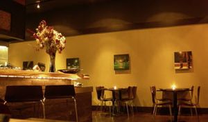 I am anti flat-screen TVs, especially in non-sports bar restaurants, but at least this one was playing an arty samurai flick, Sword of Doom. The music was good--a combo of jazz and some Ninja Tunes tracks and pop--they actually have DJs Thursday through Saturday nights, although I have no idea where they put them.