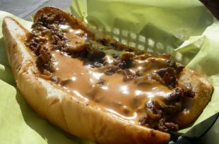 There are sides like criss-cut waffle fries (mighty tasty covered in the cheddar beer sauce--but eat 'em quick, because once they cool down they're kind of meh) or kick-ass onion rings (both $4--fries are $4.75 with the sauce). There are some items I haven't tried, like the salads, or Italian beef ($7.25) topped with giardiniera. I am coming back for the Italian Cheezy Beef, mark my words--I want his number. Vegetarians won't go hungry, and can order a veggie hoagie, a portobello steak, or a tofu steak ($6.25-$9.25).